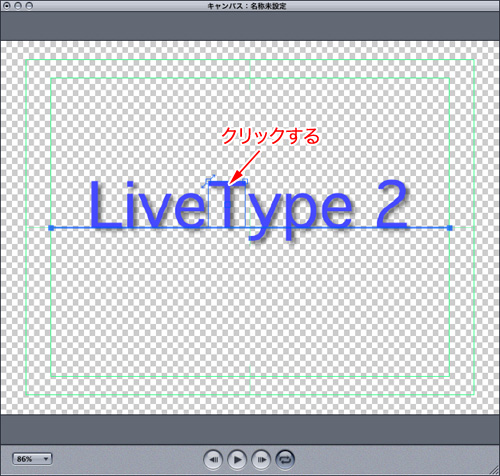 文字の左上のハンドル(□)をドラッグすると文字が回転します。