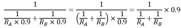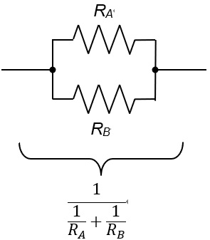 さらに,並列接続の合成抵抗は 1/RA+1/RBの逆数 なので,