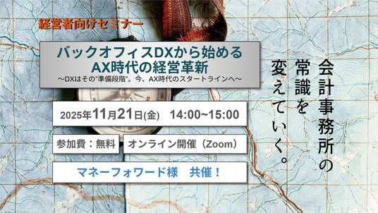 この実績を記念し、マネーフォワード株式会社と共催で、「バックオフィスDXから始めるAX時代の経営革新」セミナーを開催いたします。