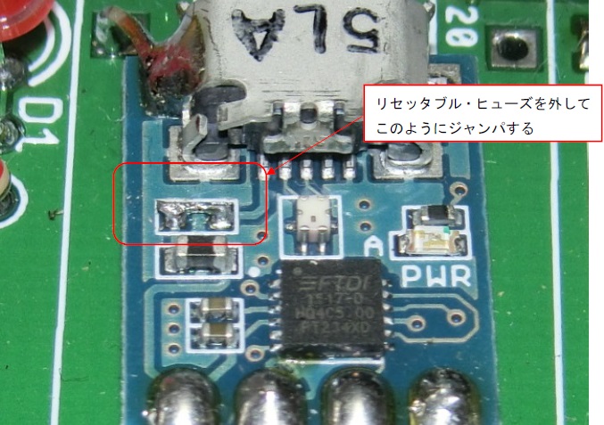 トリップ電流が1A程度のポリスイッチに変更することが望ましいですが,写真3のようにリセッタブル・ヒューズを外してジャンパすることでも簡易的に対応できます.