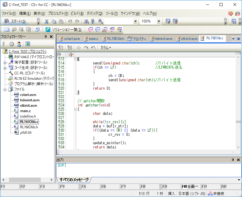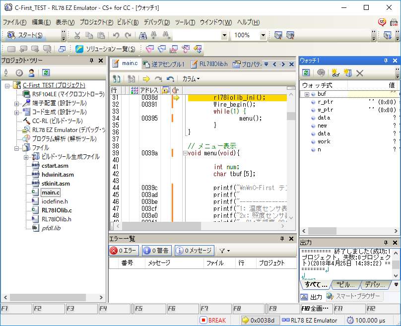 を実行して,デバッガでダウンロードします.この時にRL78/G14の内蔵ROMに書き込まれますから,出荷時の状態に戻ります.