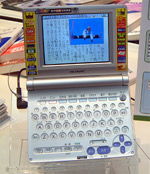 読書中に分からない言葉があったときに、辞書と連携させてすぐ調べられるという電子辞書ならではの機能も搭載された。音声再生には未対応のため、最近流行の英語学習ソフトを音声付きで使えないのが残念だが、既に「次のステージでの課題」として対応を目指しているという。 400万台市場といわれる電子辞書マーケットは「月間でPDAの約3倍という上り調子」だとシャープSST推進センター主事の村松正浩氏。電子ブックは持ち歩いて使われることも多く、そこに電子ブックを搭載しない手はないというわけだ。
