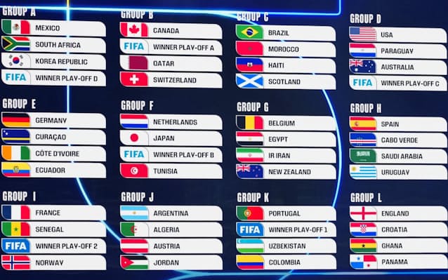前回覇者のアルゼンチンはアルジェリア、オーストリア、ヨルダンと同じJ組。優勝最多5度のブラジルはC組でモロッコ、ハイチ、スコットランドの挑戦を受ける。FIFAランク1位のスペインはH組でサウジアラビア、ウルグアイ、初出場のカーボベルデと相まみえる。