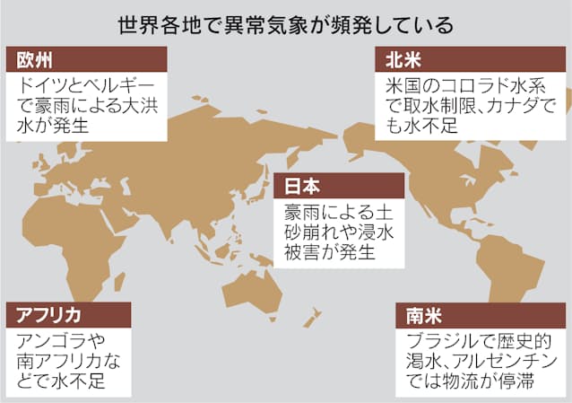 【サンパウロ=外山尚之】世界各地で異常気象が頻発している。米国では大型ハリケーンが南部を襲い、ロッキー山脈の西側では干ばつが続く。渇水が深刻なブラジルでは穀物の収穫量予測を下方修正するなど農業への影響も出ている。豪雨被害に伴う欧州での収穫減やアフリカの水不足による不作も伝えられる。気候変動がもたらす自然災害が、世界の食糧供給のリスク要因となる。
