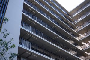 共用廊下側のお部屋に可動式ルーバー面格子がないと共用廊下を歩く人が気になって窓を開けにくいですよね。