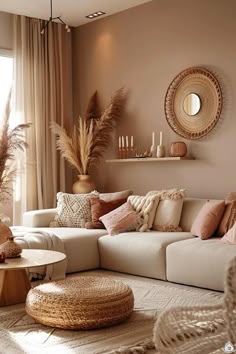 This living room embodies contemporary elegance, with a spacious sofa in neutral tones ❤️