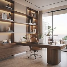 Chic Home Office with Wooden Shelves