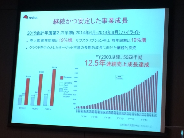 また、12月18日に発表した第3四半期決算では、51四半期連続での増収を発表。「実に12年以上に渡り、増収を続けている。50四半期連続で増収を達成しているのはIT業界ではほかにない。これは、オープンソースの広がりとともに成長してきたものである」と胸を張る。