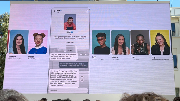 新製品としてはQuest 3のほか、米国・カナダ・英国在住者の予約を受け付けている「Ray-ban Meta スマートグラス」やキャラクター化されたAIチャットボット、生成 AIを使ったチャット用ステッカー(スタンプ)なども発表されている。どこか統一感のないバラバラな発表に思えるが、実はひとつのストーリーに繋がるものだ。