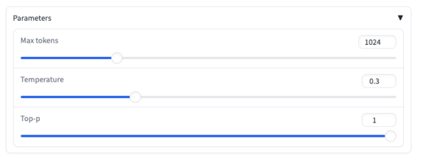 さらに、画面下の「Parameters」をクリックすることで、「最大トークン数」「温度」「Top-p」のパラメーターを調整することも可能だ。