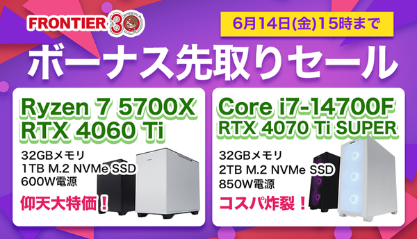 Ryzen 8000Fシリーズ搭載モデルもセール対象に FRONTIER「ボーナス先取りセール」