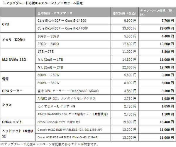 さらに、大好評のアップグレード応援キャンペーンではCORSAIRのゲーミングヘッドセットが新たに対象になっている(数量限定)。
