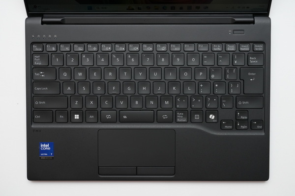 FCCLのキーボードはタイピングしやすさに定評があるが、本製品もキーピッチは約19mm、キーストロークは約1.5mmを確保し、超軽量ノートPCで省略されがちなバックライト(2段階)も装備されている。