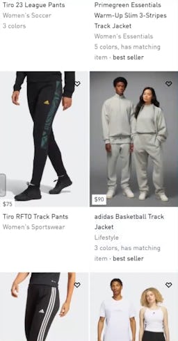 “Oh this is really cute! I like when they have hearts when you’re looking and you can actually heart something and go and look at it later and compare what you have.” A participant who admired a track jacket at adidas was glad that it had a “Save” feature on the product list and explained how she would integrate it into her general shopping process (first image). However, she was unable to save the item because when she tapped the heart icon the site required her to sign up first (second image) — which she was not interested in doing: “See, this is crap, I hate that! I go to click on the heart and in order to do that, I have to sign up. So yeah, it’s kind of intrusive in a way!