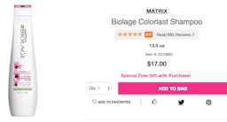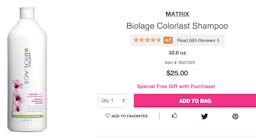 At Ulta Beauty, users must decide whether it’s a better deal to buy 13.5 oz. of shampoo for $17 (first image) or 33.8 oz. for $25 (second image). Providing the price per ounce — that is, $1.26 per oz. for the small one and $0.74 per oz. for the large — would clarify how much better the deal is when buying in bulk.