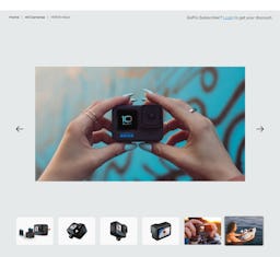 GoPro provides an “In Scale” image of a camera and illustrates its size in relation to a model’s hands. “In Scale” images are critical for users to get a sense of the relative size of products.
