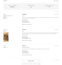 Urban Outfitter’s has a simplified review form (first image) that avoids intimidating users, which results in more users submitting reviews and a more robust reviews section for products (second image).