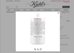“I’d like to read what it says….They’re not going to let you turn it”. At Kiehl’s, while the level of zoom and resolution were sufficient, this user still couldn’t read the ingredients list on a bottle of skin toner. After zooming in, the user wanted to be able to turn the image to see the ingredients list, but was unable to find a view where she could. A 360-view feature here may have helped.