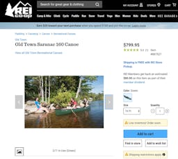 “In Scale” images can also do double duty: here, the size of the canoe is effectively conveyed to users (it fits two adult men comfortably) while users are also presented with a “Lifestyle” image — an image illustrating how the product can be used, which is designed to generate excitement and interest in the product.