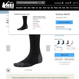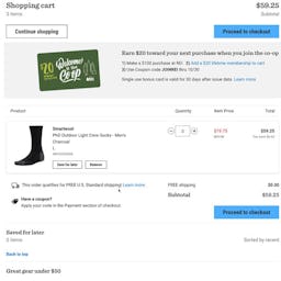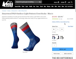 At REI, however, the clear statement of the shipping threshold makes it less likely users will be angered or surprised by the cost of the shipping during checkout (if they haven’t qualified for free shipping).