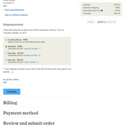 “I can see it’s ‘Free Shipping on any Order.’” This test subject noticed the “Free Shipping” banner and assumed that the order she placed would qualify for free shipping. Only later in checkout was it revealed that there’s a threshold of $49 to qualify for free shipping. Note the very small asterisk at the end of the free shipping text banner.