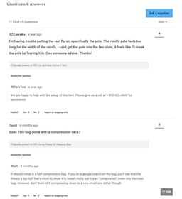 REI mixes both site-authored responses to questions with community responses in the Q&A section, giving users the “best of both worlds” — authoritative content from REI specialists and credible content from other users of the products.