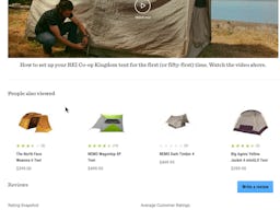 REI provides a cross-sell section that only contains alternative products — in this case, other tents. This eases the product-finding process for users, as they are able to stay on track with finding a product that meets their needs.