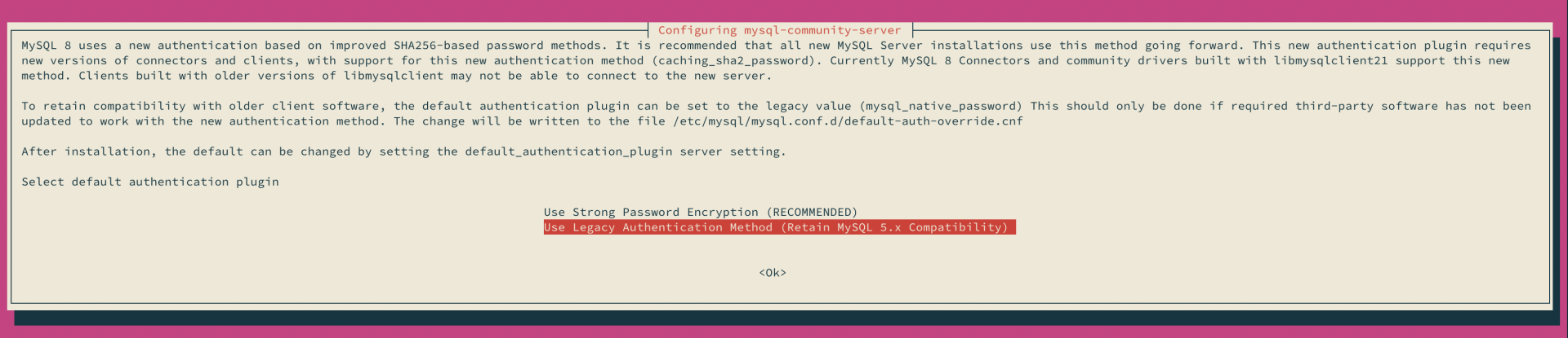 matsu@dell ~> sudo apt install mysql-client mysql-server [62/674] Reading package lists... Done Building dependency tree... Done Reading state information... Done The following packages were automatically installed and are no longer required: libcgi-fast-perl libcgi-pm-perl libclone-perl libencode-locale-perl libevent-pthreads-2.1-7 libfcgi-bin libfcgi-perl libfcgi0ldbl libhtml-parser-perl libhtml-tagset-perl libhtml-template-perl libhttp-date-perl libhttp-message-perl libio-html-perl liblwp-mediatypes-perl libprotobuf-lite23 libtimedate-perl liburi-perl Use 'sudo apt autoremove' to remove them. The following additional packages will be installed: mysql-common mysql-community-client mysql-community-client-core mysql-community-client-plugins mysql-community-server mysql-community-server-core The following packages will be REMOVED: mysql-client-8.0 mysql-client-core-8.0 mysql-server-8.0 mysql-server-core-8.0 The following NEW packages will be installed: mysql-client mysql-community-client mysql-community-client-core mysql-community-client-plugins mysql-community-server mysql-community-server-core The following packages will be upgraded: mysql-common mysql-server 2 upgraded, 6 newly installed, 4 to remove and 0 not upgraded. Need to get 31.0 MB of archives. After this operation, 33.0 MB of additional disk space will be used. Do you want to continue? [Y/n] Get:1 http://repo.mysql.com/apt/ubuntu jammy/mysql-innovation amd64 mysql-server amd64 8.1.0-1ubuntu22.04 [66.5 kB] Get:2 http://repo.mysql.com/apt/ubuntu jammy/mysql-innovation amd64 mysql-common amd64 8.1.0-1ubuntu22.04 [67.8 kB] Get:3 http://repo.mysql.com/apt/ubuntu jammy/mysql-innovation amd64 mysql-community-client-plugins amd64 8.1.0-1ubuntu22.04 [1428 kB] Get:4 http://repo.mysql.com/apt/ubuntu jammy/mysql-innovation amd64 mysql-community-client-core amd64 8.1.0-1ubuntu22.04 [2087 kB] Get:5 http://repo.mysql.com/apt/ubuntu jammy/mysql-innovation amd64 mysql-community-client amd64 8.1.0-1ubuntu22.04 [2407 kB] Get:6 http://repo.mysql.com/apt/ubuntu jammy/mysql-innovation amd64 mysql-client amd64 8.1.0-1ubuntu22.04 [66.5 kB] Get:7 http://repo.mysql.com/apt/ubuntu jammy/mysql-innovation amd64 mysql-community-server-core amd64 8.1.0-1ubuntu22.04 [24.8 MB] Get:8 http://repo.mysql.com/apt/ubuntu jammy/mysql-innovation amd64 mysql-community-server amd64 8.1.0-1ubuntu22.04 [78.2 kB] Fetched 31.0 MB in 7s (4296 kB/s) Preconfiguring packages ... (Reading database ... 169877 files and directories currently installed.) Preparing to unpack .../mysql-server_8.1.0-1ubuntu22.04_amd64.deb ... Unpacking mysql-server (8.1.0-1ubuntu22.04) over (8.0.34-0ubuntu0.22.04.1) ... (Reading database ... 169880 files and directories currently installed.) Removing mysql-server-8.0 (8.0.34-0ubuntu0.22.04.1) ... update-alternatives: using /etc/mysql/my.cnf.fallback to provide /etc/mysql/my.cnf (my.cnf) in auto mode Removing mysql-client-8.0 (8.0.34-0ubuntu0.22.04.1) ... Removing mysql-client-core-8.0 (8.0.34-0ubuntu0.22.04.1) ... Removing mysql-server-core-8.0 (8.0.34-0ubuntu0.22.04.1) ... (Reading database ... 169679 files and directories currently installed.) Preparing to unpack .../0-mysql-common_8.1.0-1ubuntu22.04_amd64.deb ... Unpacking mysql-common (8.1.0-1ubuntu22.04) over (5.8+1.0.8) ... Selecting previously unselected package mysql-community-client-plugins. Preparing to unpack .../1-mysql-community-client-plugins_8.1.0-1ubuntu22.04_amd64.deb ... Unpacking mysql-community-client-plugins (8.1.0-1ubuntu22.04) ... Selecting previously unselected package mysql-community-client-core. Preparing to unpack .../2-mysql-community-client-core_8.1.0-1ubuntu22.04_amd64.deb ... Unpacking mysql-community-client-core (8.1.0-1ubuntu22.04) ... Selecting previously unselected package mysql-community-client. Preparing to unpack .../3-mysql-community-client_8.1.0-1ubuntu22.04_amd64.deb ... Unpacking mysql-community-client (8.1.0-1ubuntu22.04) ... Selecting previously unselected package mysql-client. Preparing to unpack .../4-mysql-client_8.1.0-1ubuntu22.04_amd64.deb ... Unpacking mysql-client (8.1.0-1ubuntu22.04) ... Selecting previously unselected package mysql-community-server-core. Preparing to unpack .../5-mysql-community-server-core_8.1.0-1ubuntu22.04_amd64.deb ... Unpacking mysql-community-server-core (8.1.0-1ubuntu22.04) ... Selecting previously unselected package mysql-community-server. Preparing to unpack .../6-mysql-community-server_8.1.0-1ubuntu22.04_amd64.deb ... Unpacking mysql-community-server (8.1.0-1ubuntu22.04) ... Setting up mysql-common (8.1.0-1ubuntu22.04) ... Installing new version of config file /etc/mysql/conf.d/mysql.cnf ... [5/678] Installing new version of config file /etc/mysql/my.cnf.fallback ... Setting up mysql-community-server-core (8.1.0-1ubuntu22.04) ... Setting up mysql-community-client-plugins (8.1.0-1ubuntu22.04) ... Setting up mysql-community-client-core (8.1.0-1ubuntu22.04) ... Setting up mysql-community-client (8.1.0-1ubuntu22.04) ... Setting up mysql-client (8.1.0-1ubuntu22.04) ... Setting up mysql-community-server (8.1.0-1ubuntu22.04) ... Installing new version of config file /etc/apparmor.d/usr.sbin.mysqld ... Installing new version of config file /etc/mysql/mysql.cnf ... Installing new version of config file /etc/mysql/mysql.conf.d/mysqld.cnf ... update-alternatives: using /etc/mysql/mysql.cnf to provide /etc/mysql/my.cnf (my.cnf) in auto mode Setting up mysql-server (8.1.0-1ubuntu22.04) ... Processing triggers for man-db (2.10.2-1) ... Processing triggers for libc-bin (2.35-0ubuntu3.1) ... Scanning processes... Scanning candidates... Scanning processor microcode... Scanning linux images... The processor microcode seems to be up-to-date. Restarting services... Service restarts being deferred: systemctl restart NetworkManager.service systemctl restart networkd-dispatcher.service systemctl restart unattended-upgrades.service systemctl restart wpa_supplicant.service No containers need to be restarted. No user sessions are running outdated 