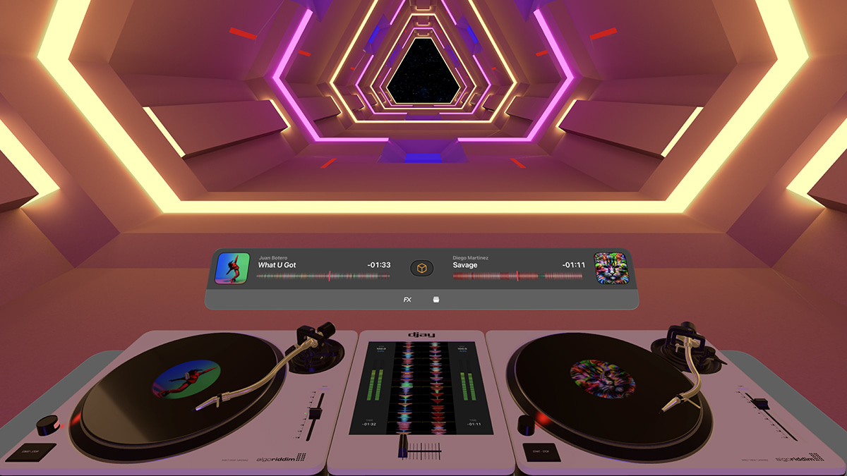 visionOSでは、デジタルコンテンツを現実世界とユニークに融合させた、画期的な空間コンピューティング体験を生み出すことができます。ユーザーは、周囲とのつながりを保ちながらアプリを操作することも、作り出された世界に完全に浸ることもできます。まずはウインドウから始めて、3Dコンテンツに引き込み、フルイマーシブ型のシーンに移行した後、再び以前の環境に戻る、というような流動的な体験が可能です。