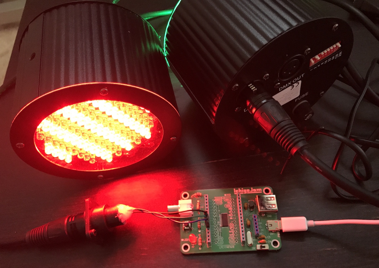 DMX512に対応した照明、一番安くて2,000円ほど!("DMX512 照明"で検索 on Amazon)