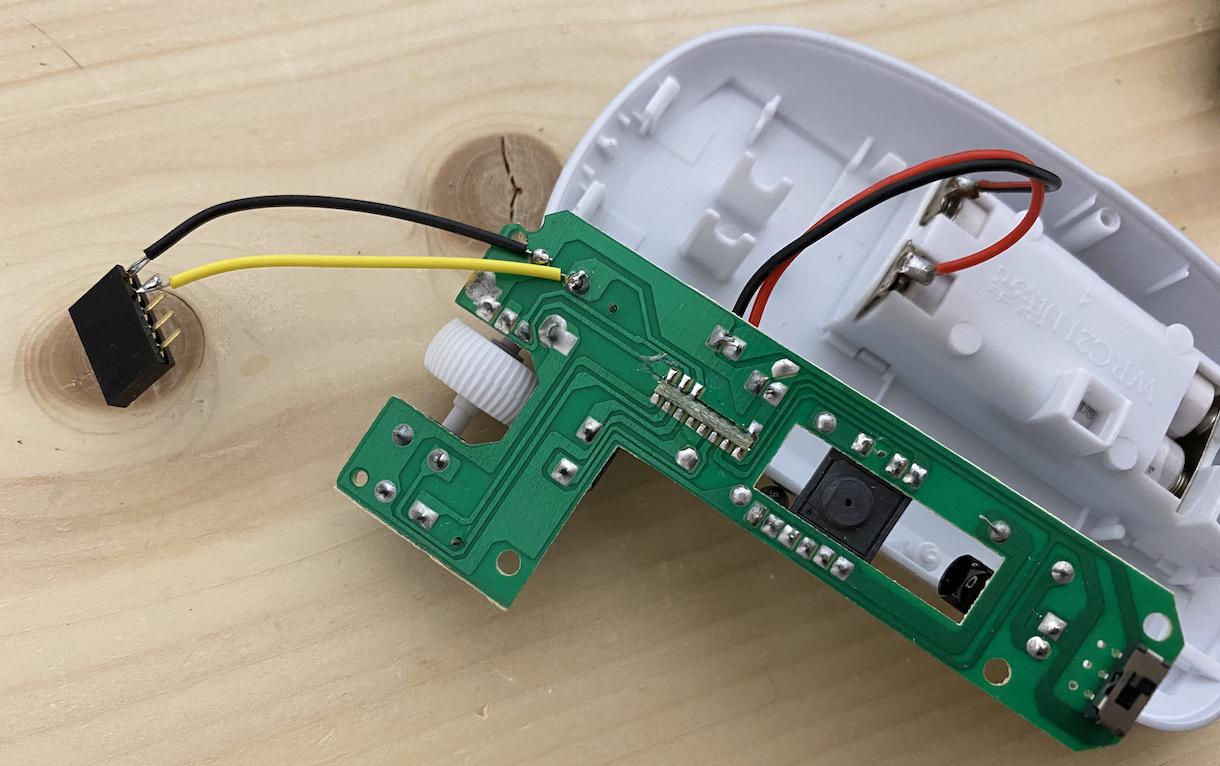 左ボタン、右ボタン部分にあるマイクロスイッチ、裏面をジャンパー線でくっつけてみると、PC画面でクリックします。(追記、電界強度が微弱無線局の範囲を越えていると電波法違反の恐れアリ)