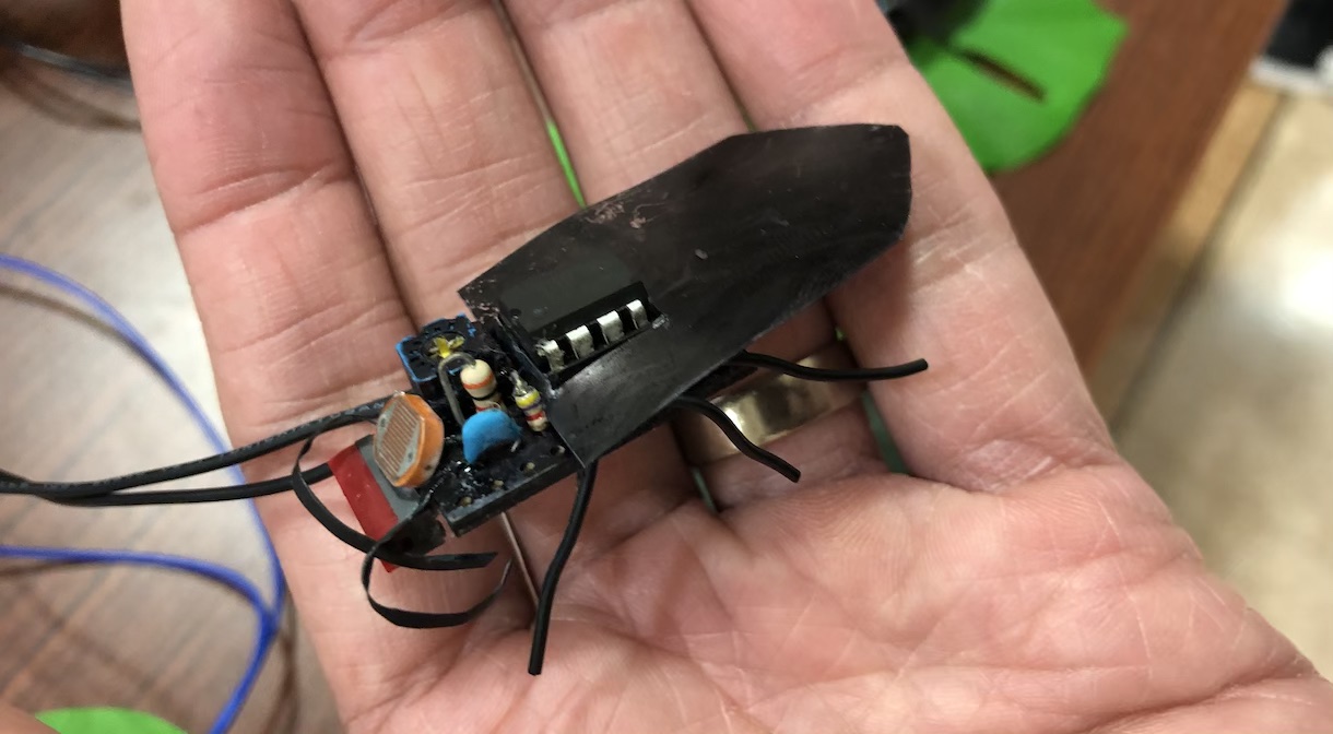 手のひらで暗くすると光るホタル型のおもちゃ!光センサーとLEDの���み合わせ、子供向け実験にも良さそう!
