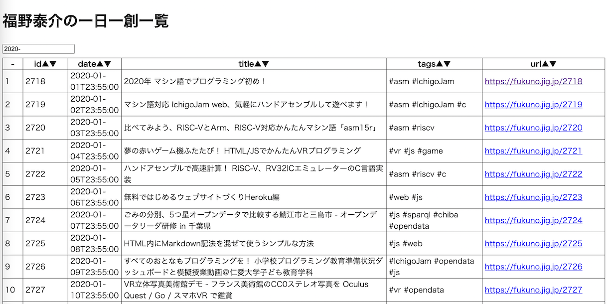 全3068記事、CSVオープンデータ化して、検索アプリにしました。