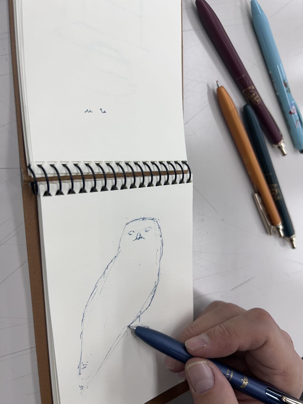 今回、サラサグランドの〈ハリー・ポッター〉コラボモデルを使って、画家・小林聡一先生に「ヘドウィグ」のイラストを描いていただきました。