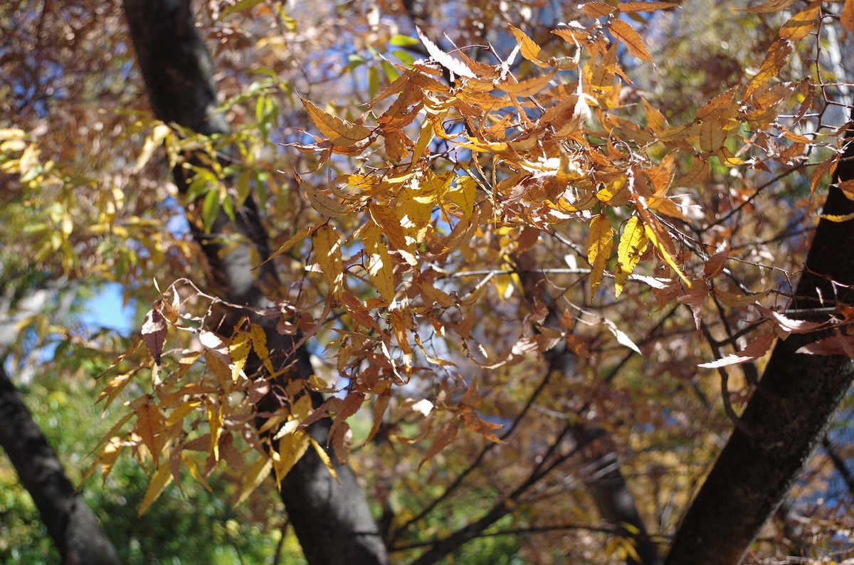 ケヤキのほかにも、園内ではプラタナス(スズカケノキ科)などの葉が紅葉しています。
