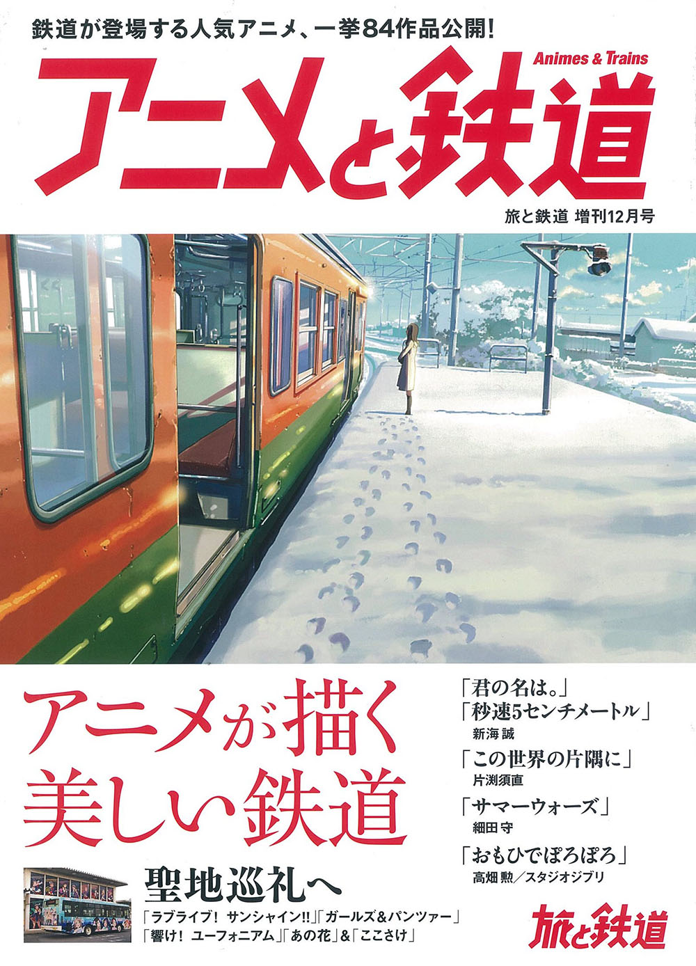 真柄:「旅鉄」の特集のひとつでアニメを取り上げたのが始まりです。2017年5月号(発売は同年3月)で特集「鉄道×アニメ 聖地巡礼」を組みました。年末の流行語大賞に、聖地巡礼(註2)が入り、前年の夏休みに公開が始まった『君の名は。』(註3)が大ヒットを記録したタイミングでもありました。『君の名は。』には鉄道シーンがいっぱい出てくるんですよ。