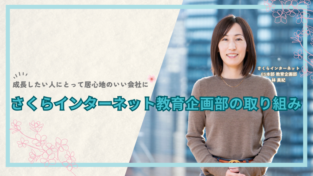 さくらインターネットのES本部(人事部門)では「教育企画部」という、経験者採用での入職者向けのオンボーディング施策や、社員向けの研修などをおこなう部門を設け、社員の成長を支援しています。部門のミッションや、現在注力する取り組みなどについて、教育企画部の林 美紀にインタビューしました。