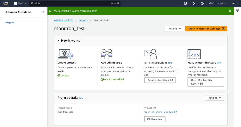 今回は”monitron_test”というプロジェクト名に設定しました。