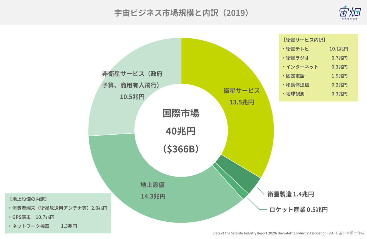 Credit : 2019 Global Space Economy at a Glance(2020年10月)と宇宙産業ビジョン2030を元にsorabatakeが作成